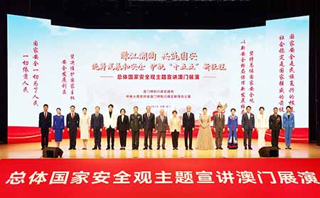 【特訊】為深入學習貫徹總體國家安全觀,推動國家安全宣傳教育在澳門走深走實,凝聚維護國家安全、守護澳門繁榮穩定的社會合力,四月九日上午,澳門特別行政區政府與中央人民政府駐澳門特別行政區聯絡辦公室在澳門大學會堂聯合舉辦“統籌發展與安全 護航‘十五五’新征程”總體國家安全觀主題宣講展演。
