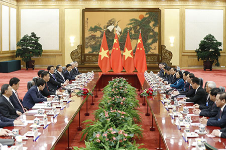 習近平強調,中越雙方要保持高層交往,就雙邊關係和共同關心的問題及時溝通,為雙邊關係發展把穩方向。要用好中越雙邊合作指導委員會等機制,加緊雙方發展戰略對接,推進跨境經濟合作區建設,深化產能、基礎設施建設、投資、貿易等各領域合作,服務好各自經濟社會發展。要擴大人文交流,積極開展教育、醫療、青年和文化產業合作,增進兩國人民相互瞭解和友好感情,為中越友好夯實民意基礎。要推進海上合作,逐步積累共識,擴大共同利益,同時通過雙邊對話,管控好分歧。要加強在聯合國、亞太經合組織、中國-東盟、瀾滄江-湄公河合作等多邊框架內的協調和配合。