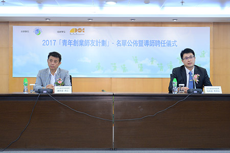 2017「青年創業師友計劃」- 名單公佈暨導師聘任儀式於6月13日假經濟局會議室舉行。經濟局副局長劉偉明、經濟局會展業及產業發展廳廳長邱潤華、青年創業智庫協會會長關偉霖、理事長吳偉恩、監事長蔡強以及逾40位參與青年創業師友計劃之顧問導師及學員出席儀式。