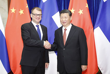 【中新社北京6月26日電】(記者 蔣濤)中國國家主席習近平26日在人民大會堂會見芬蘭總理西比萊。