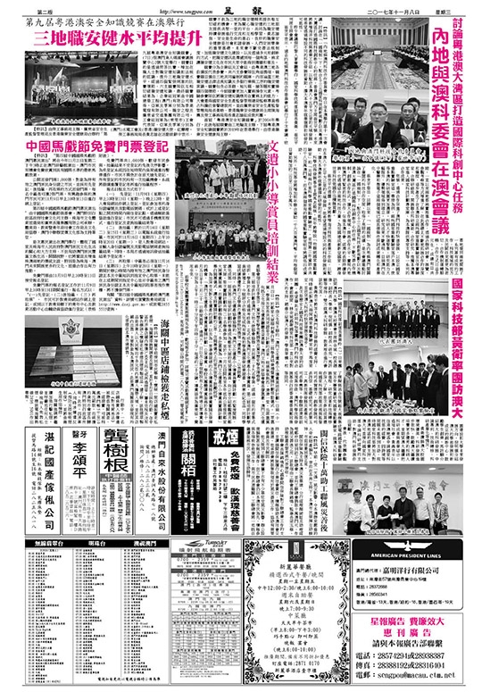 星報首頁 | 昔日新聞 | 各項專版 | 廣告業務 | 報社簡介 | 澳門日記
