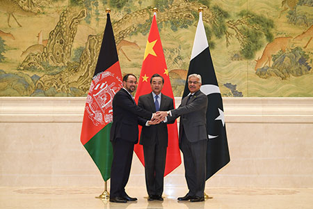 王毅表示,阿富汗、巴基斯坦是中國的傳統友好鄰邦和戰略合作夥伴,三國山水相連,利益相融、人文相通。當前,阿富汗處在關鍵轉型期,政治和解與經濟重建任重道遠。巴基斯坦進入維護穩定和推進發展攻堅期,需要良好外部環境。中國正在積極推進“一帶一路”建設,視阿、巴為重要合作夥伴,願為阿、巴和地區穩定、安全和發展作出積極努力。在此背景下,中阿巴三方合作應運而生,將有力促進三方協調合作,維護三方共同利益。