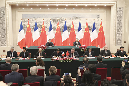 兩國元首還共同出席了台山核電站歐洲先進壓水堆全球首堆工程命名揭牌儀式,見證了兩國成立中法企業家委員會諒解備忘錄以及國家公園體制建設、核能、空間技術、人才交流、環保、金融、衛生、航空、農業、養老、文化、教育、商業等領域雙邊合作文件的簽署。