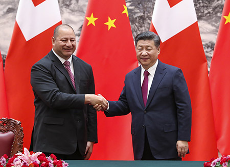 習近平強調,中國同包括湯加在內的太平洋島國是同呼吸、共命運、齊發展的好朋友、好夥伴。中共十九大提出要推動建設相互尊重、公平正義、合作共贏的新型國際關係,推動構建人類命運共同體,強調中方將秉持正確義利觀和真實親誠理念,加強同發展中國家團結合作。上述理念和方針將為中湯關係和兩國合作開闢更加廣闊的前景。