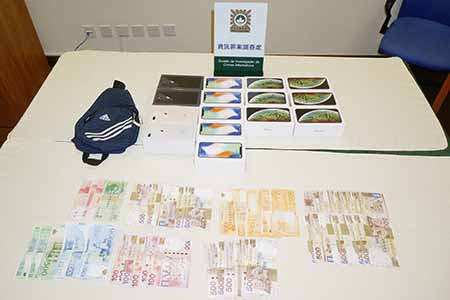 在本月五日中午,犯罪集團一名馬來西亞籍成員經氹仔北安碼頭抵澳,司警即時展開跟縱監視,該名可疑男子先後到路氹城兩間大型度假村的商場,及前往關閘廣場一間手機店舖,及兩次接觸一名相信接贓的吳姓男子,合共交給對方六部手提電話,司警在時機成熟時上前將兩人拘捕。