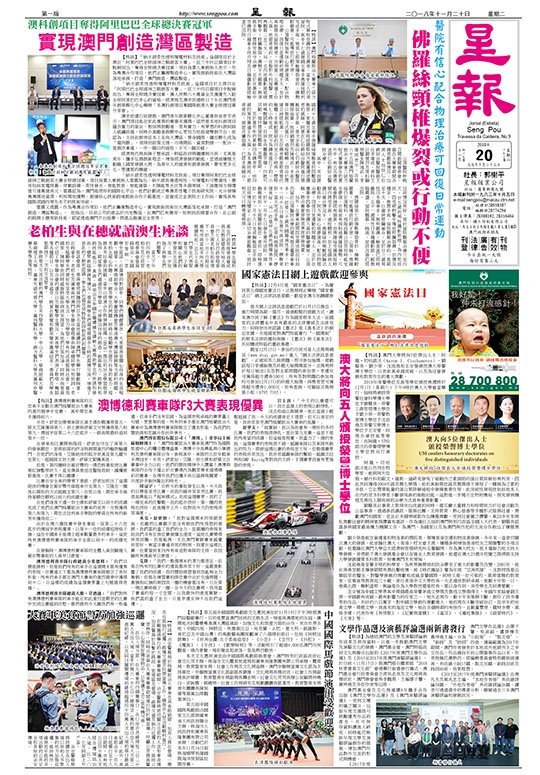山頂醫院昨晚召開新聞發佈會,報告大賽車期間各傷者最新情況,出席人士包括仁伯爵綜合醫院醫務主任李偉成、骨科主任劉懷烈及骨科顧問醫生陳鴻武。李偉成表示,在第六十五屆澳門格蘭披治大賽車三級方程式賽事發生的意外中,有五名傷者送到仁伯爵綜合醫院治療。