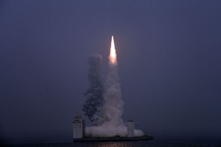 2019年,固體運載火箭海上發射技術試驗獲中國國家航天局正式立項,採用長征十一號運載火箭實施首次海上發射。海上發射技術試驗系統由運載火箭系統、海上發射平台、測控通信系統和衛星系統四部分組成,可實現離港後一周之內完成發射。