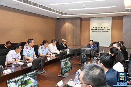 在懸掛八號風球期間,行政長官崔世安在保安司司長黃少澤陪同下到達民防行動中心,聽取聯合行動指揮官、警察總局馬耀權局長及民防架構代表有關應對颱風的工作滙報,行政長官指示各部門時刻關心市面情況,保持消息互通,緊密協作,因應颱風風勢變化、社區秩序和居民的受影響程度等各種可能出現的情況,共同作出適時適度的應變,以最大的努力保護好廣大居民的生命和財產安全。