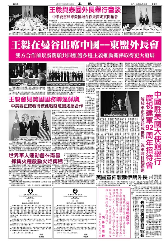 【中新社曼谷8月1日電】(記者 王國安)中國國務委員兼外交部長王毅7月31日在泰國曼谷同泰國外長敦舉行會談並共同會見記者。