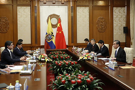 王毅表示,中國是厄瓜多爾在全球的第一個全面戰略夥伴。中厄始終相互理解、相互尊重、相互支持。雙方要夯實政治互信,辦好明年兩國建交40周年慶祝活動,推動中厄全面戰略夥伴關係再上新台階。中方願同厄方聯合研究制定共建“一帶一路”合作規劃,爭取早期收穫。中方歡迎厄方參加第二屆中國國際進口博覽會,祝賀厄瓜多爾成為拉美地區第一個加入亞洲基礎設施投資銀行的國家。雙方也應推動教育、旅遊等人文領域交流合作。