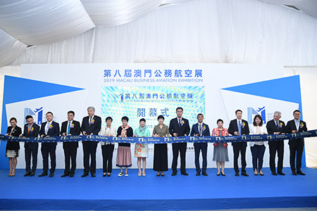 由南光集團,中國航空器材集團及澳門會議展覽業協會聯合主辦的「第八屆澳門公務航空展」昨舉行開幕式,經濟財政司梁維特司長代表澳門貿促局主席劉關華,中聯辦經濟部副部長張建華,國家工信部裝備司代表程坤,澳門民航局局長陳穎雄,旅遊局局長文綺華,經濟局副局長陳子慧,中航材總經理楊曉明等嘉宾出席。