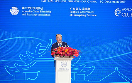 【中新社廣州12月1日電】(記者 索有為 郭軍)中國國家副主席王岐山1日在廣州出席“2019從都國際論壇”開幕式並致辭。