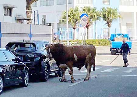 【特訊】屠房有活牛走失,昨日早上在青州的街道上行走,市政署證實,一頭屬南光公司的牛在運送至屠房時掙脫並走出屠房範圍,治安警、消防、市政署獸醫及土特產等人員跟進,將牛隻引導至安全地點逆施麻醉劑,成功用車將牛隻運回屠房,並將轉交市政署飼養,事件中無人受傷。