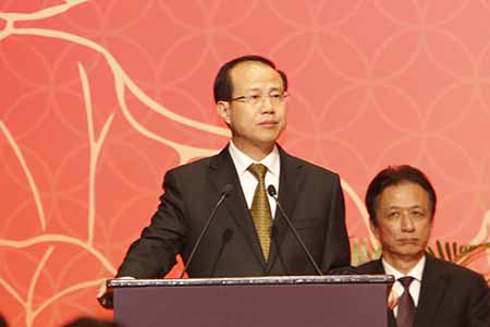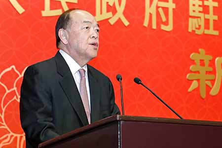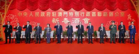新春酒會於昨日下午三時三十分舉行,行政長官賀一誠,全國政協副主席何厚鏵,中聯辦主任傅自應等出席,並主持祝酒儀式,傅自應在致辭時表示,過去的一年,對於澳門具有特殊的意義,這一年,澳門順利舉行第五任行政長官選舉,成功舉辦回歸祖國二十周年慶祝活動,向世界展示了具有澳門特色的「一國兩制」成功實踐。