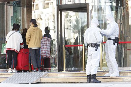 應變協調中心並介紹了昨日各出入口岸的出入境情況、協助逗留本澳的武漢旅客的離境情況;強調當局會持續加強巡查藥房、酒店及非法旅館等。此外,亦解釋借用皇庭海景酒店集中安置在澳湖北旅客的原因,包括酒店大小適合、距離民居較遠、酒店佈局較簡單方便管理、其空調系統合適等等。現時暫時安排了38名旅客入住皇庭海景酒店接受醫學監察,特區政府特別感謝酒店配合政府的抗疫措施。
