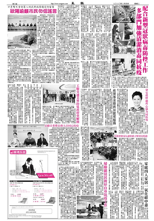 另外,市政署早前亦已協調清潔專營公司加派人手,加強於各出入境口岸、公園、休憩區及公廁等公共地方及設施進行清潔及消毒工作,盡力減低傳染病傳播的條件。