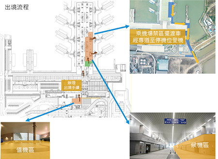 計劃內容又指,出入境旅客於輔助候機樓內進行值機、行李托運及領取、保安檢查、出入境手續等程序,輔助候機樓亦強化氹仔客運碼頭至機場的海空聯運服務,海空旅客或空海旅客都毋需辦理一般出入境及海關手續,轉乘航班往外地或轉乘船隻前往大灣區。