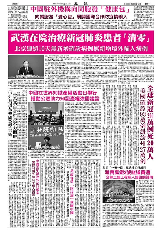 【中新社北京4月26日電】近日,中國駐外機構全面落實對中國境外公民的關心關愛,向當地中國同胞發放“健康包”,向海外僑胞發放“愛心包”,積極開展國際合作,嚴防境外疫情輸入。