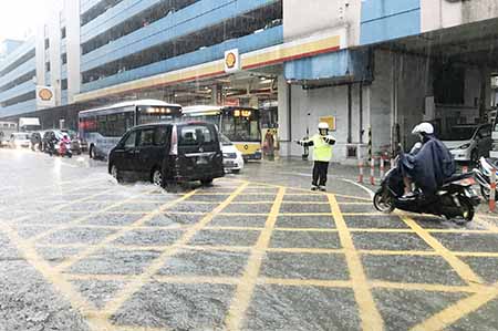 氣象局於昨日上午十時四十分發出暴雨警告信號,低窪地區出現水浸。昨日早上暴雨期間,本澳低窪地區一度出現水浸情況,商戶忙於整理貨物及清理積水,部份路段一度需要封路,在低窪地區的商戶表示,昨日大雨來得急,水浸情況嚴重,下水道亦經常堵塞,有內港區商戶指出,若大雨持續三十分鐘以上,水位都升到膝蓋位置,下水道堵塞無人處理,每當颱風或暴雨,商戶都叫苦連天。
