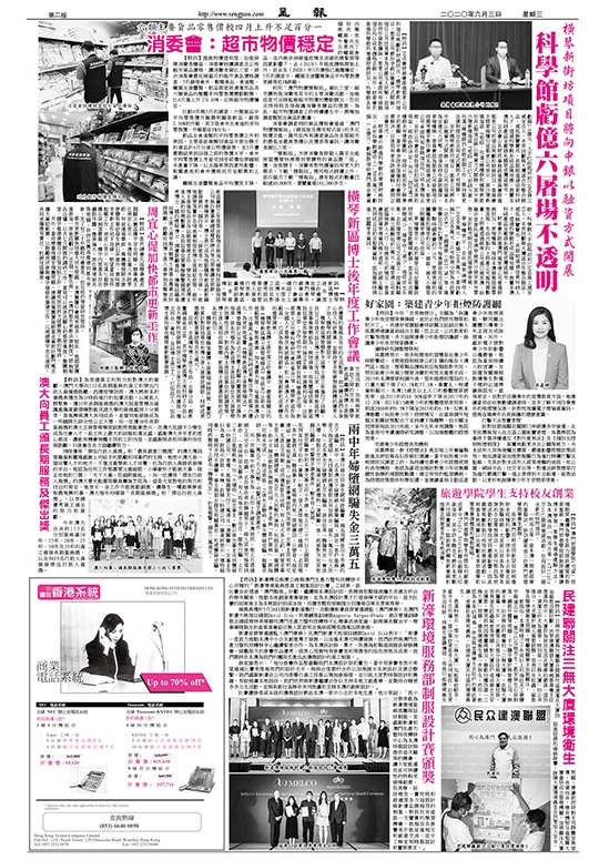 【特訊】立法會財務會跟進都更公司的項目規劃和財務狀況。橫琴新街坊項目,都更公司將向中銀以融資方式開展,項目公司註冊資本為58億元人民幣,毋須政府作貸款擔保,都更公司承諾所有發展項目均以成本價格去做。另外,財委會亦跟進科學館的營運財務狀況,科學館去年虧損1.6億元,人手已由起初的130名員工減至93人,未來計劃與大灣區合作整合展品,減低展覽費用,長期則通過培育科研人才,透過科學館形成品牌效應,售賣本澳科研產品至葡語系國家或灣區城市。