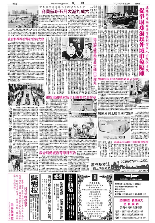 【特訊】北區社諮會召開平常會議,有委員指收到多宗求助,希望到珠海以外的內地城市照顧重病親人或奔喪,但沒有渠道申請入境豁免隔離,促請本澳積極爭取內地相關部門支持,為看望重病和奔喪的特別需求人士提供方便政策。亦有議員建議政府趁現時交通不緊張,縮短掘路施工時間,為未來重新正常通關,開通自由行創造便利交通環境。