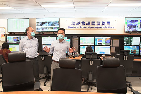 氣象局舉行傳媒茶聚,並參觀氣象監察中心。氣象局預測今年6至9月會有4至6個熱帶氣旋進入本澳800公里範圍,氣象局局長梁永權指,颱風從澳門東面或是西面登陸影響差異較大,東登颱風風從陸上吹來,風力會較小,風暴潮機會亦較小;若西登颱風,風從海上吹來,風力會較大,亦較易有風暴潮。他希望以簡明易懂的表達方式令市民更易理解熱帶氣旋的影響,未來會加強宣傳。