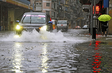 【特訊】氣象局昨日凌晨五時懸掛今年首個十號風球,颱風「海高斯」最近集結本澳西南約二十公里,氣象局同時發出紅色風暴潮警告(第四級),內港一帶水浸深近一米,低窪地區逾二千七百多名居民撤離,十五居民受傷,有三輛汽車被吹落西灣湖。隨著「海高斯」昨清晨登陸珠海,本澳逐漸恢復正常。有居民指,十號風球懸掛時,感到大厦劇烈搖晃,非常駑慌。氣象局指出,颱風「海高斯」强度僅次於「天鴿」又強於「山竹」。