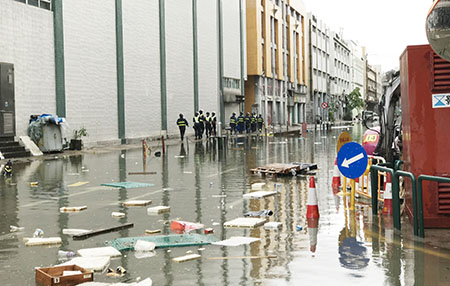 此外,市政署渠務人員持續到各區巡查渠網及監察各雨水泵房運作,並即時疏通受垃圾堵塞之雨水井,以確保正常排洪能力,而風球懸掛期間各雨水及污水泵房均運作正常。