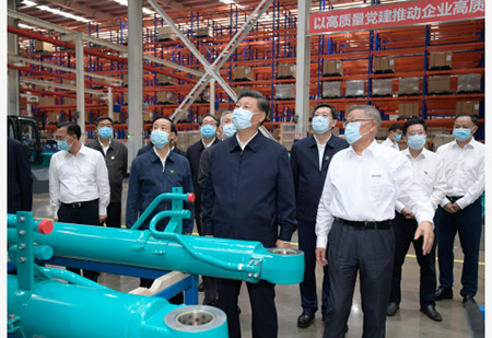 17日下午,習近平在長沙市考察調研。山河智能裝備股份有限公司是一家裝備製造領域的龍頭企業,產品行銷全球。習近平來到公司生產車間,察看裝備製造流程,瞭解技術研發、生產製造情況,對他們的創新精神表示贊賞。習近平強調,自主創新是企業的生命,是企業爬坡過坎、發展壯大的根本。關鍵核心技術必須牢牢掌握在自己手裡。要堅定不移把製造業和實體經濟做強做優做大。我們強調構建新發展格局,不是關起門來搞建設,而是要繼續擴大開放。