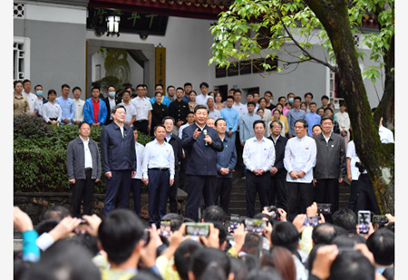 岳麓書院位於長沙岳麓山腳下、湖南大學校園內,是一所創建於北宋年間的千年學府。習近平來到這裡考察調研,瞭解人才培養、文化傳承等情況。書院裡,習近平同正在開展思政課現場教學的師生們親切交流。他強調,要把課堂教學和實踐教學有機結合起來,充分運用豐富的歷史文化資源,緊密聯系中國共產黨和中國人民的奮鬥歷程,深刻領悟馬克思主義中國化的內在道理,深刻領悟為什麼歷史和人民選擇了中國共產黨和社會主義,進一步堅定“四個自信”。