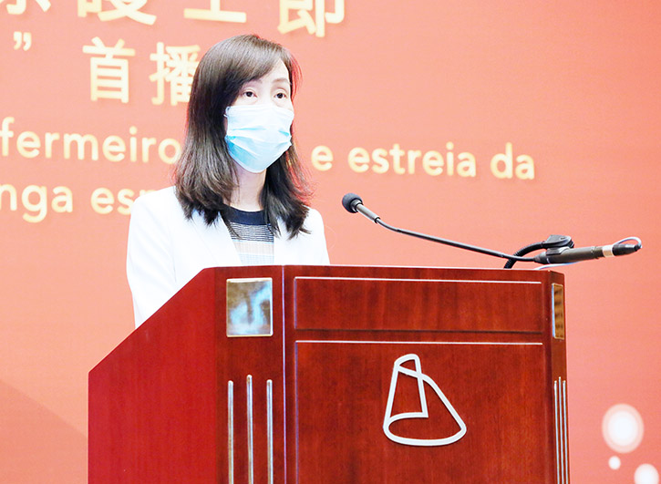 歐陽瑜致詞時表示,今年年初新冠肺炎疫情的爆發,對全球構成嚴峻考驗。特區政府在國家的支持與行政長官的領導下取得了階段性的成效。疫情期間,面對未知的疫情,本澳醫護人員展現了勇敢無懼的專業精神,得到廣大市民的認同及稱讚。雖然目前澳門疫情已相對緩和,但全球疫情仍然嚴峻,特區政府已進入常態化抗疫階段,得益於中央政府的大力支持,本澳社會逐步轉入正常生活狀態,全國疫情低風險地區的省市和澳門亦開始恢復人員交流。特區政府將持續加大專業培訓,提升醫療服務水平,不斷完善衛生範疇的法律、法規,進一步促進專業發展。最後,她代表特區政府向每一位長期無私奉獻、傳承專業精神的護士致以崇高的敬意,感謝他們為保障本澳居民健康所作出的貢獻。