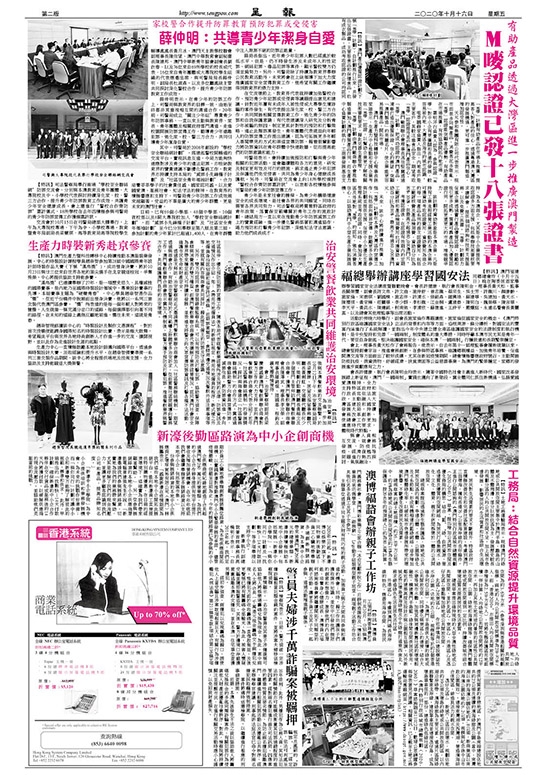 【特訊】澳門產品優質認證計劃(下稱「M嘜」計劃),自計劃推行以來,共發出18張證書,主要是食品和保健食品,也有成衣製品。成功考取認證的公司均認同「M嘜」計劃有助產品在 市場上推廣,提高客人對產品的信心,透過粵港澳大灣區的發展機遇,更可進一步推廣澳門製造,增加認受性。