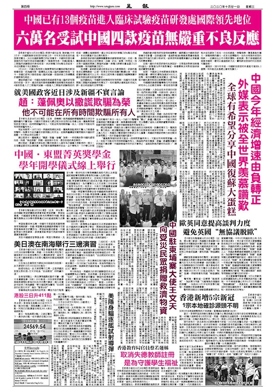 當前報章2020年10月21日