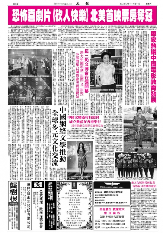 【中新社舊金山11月16日電】恐怖喜劇片《砍人快樂》(Freaky)首映開門紅,以較大優勢奪得最新一期北美周末票房排行榜冠軍。