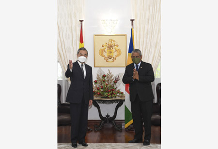 【中新社北京1月10日電】當地時間1月9日,塞舌爾總統拉姆卡拉旺在維多利亞會見對塞舌爾進行正式訪問的中國國務委員兼外長王毅。