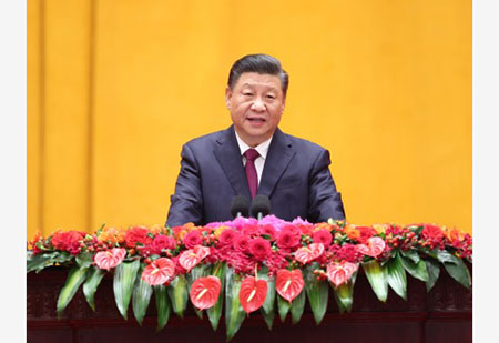 習近平在講話中指出,回首過去一年,既有驚心動魄的風雲突變,又有豪情萬丈的砥礪前行。實踐再次證明,中國特色社會主義制度具有無比強大的生命力和創造力,中國人民和中華民族具有無比強大的凝聚力和向心力。祗要全黨全國各族人民緊密團結在黨中央的周圍,就沒有任何困難能够難倒我們,就沒有任何力量能够阻擋中華民族實現偉大復興的鏗鏘步伐。