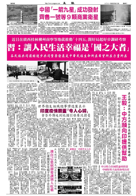 【中新社北京4月27日電】(郭超凱 鄭瑩瑩)北京時間4月27日11時20分,中國在太原衛星發射中心用長征六號運載火箭,以「一箭九星」的方式成功將齊魯一號、齊魯四號、佛山一號等3顆主星送入預定軌道。此次任務還搭載發射了中安國通一號、天啟星座09星、起源太空NEO-1衛星、泰景二號01星、金紫荊一號衛星、靈鵲一號D02衛星等6顆衛星。