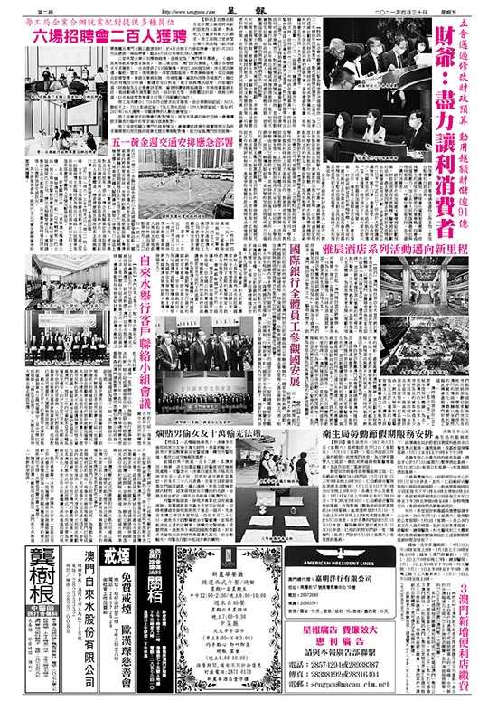修訂案中亦追加兩億元醫療補貼計劃預算,財政局局長容光亮解釋,醫療補貼計劃的追加,最主要是因應去年新冠肺炎疫情推出的醫療補貼特別計劃,該使用期為去年6月1日至今年5月31日,但由於大家保護意識增強,戴了口罩、盡量留家,一般疾病減少,有關支出也減少,至去年底的執行率僅7.8%,在謹慎、保守預計下,執行率可能只有八成半,故需追加兩億元預算。
