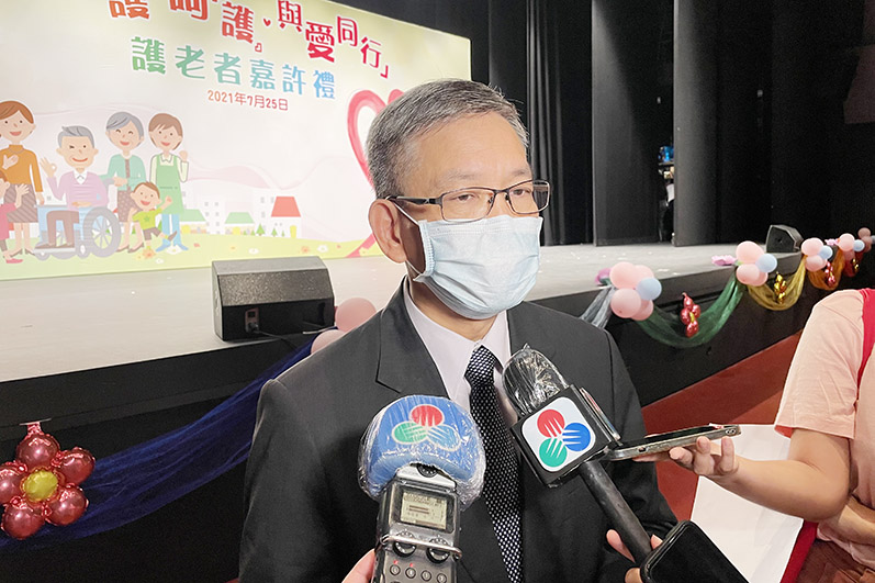 護老者嘉許禮昨日假何黎婉華庇道演藝劇院舉行,社會工作局長者處處長甘潔玲、澳門明愛總幹事潘志明、澳門明愛服務總監袁志海,以及導演余志雲等出席。