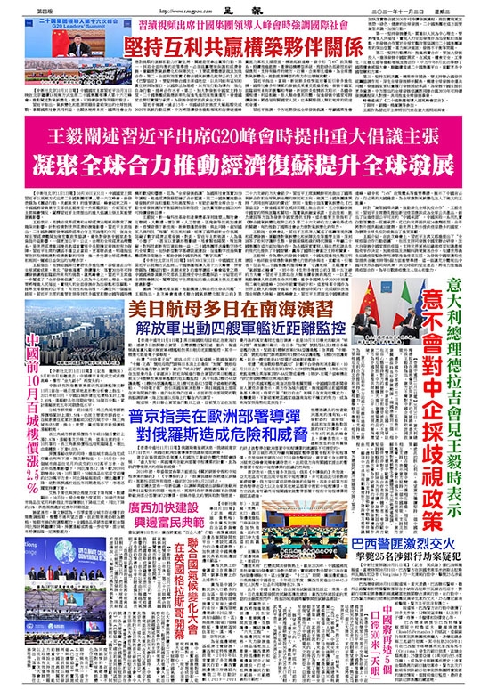 【中新社北京10月31日電】中國國家主席習近平10月31日晚在北京繼續以視頻方式出席二十國集團領導人第十六次峰會,重點闡述對氣候變化、能源、可持續發展等問題的看法。