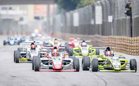 第六十八屆澳門格蘭披治大賽車昨日進入尾聲,並於下午三時半舉行壓軸賽事澳娛綜合四級方程式大賽。賽前,行政長官賀一誠在社會文化司司長兼大賽車組委會主席歐陽瑜陪同下,到賽場主持起步禮和醒獅點睛儀式,並跟大賽車組委會成員及參賽車手逐一握手打氣。儀式後,賀一誠到觀眾席觀看四級方程式賽事,其後又主持頒獎禮。