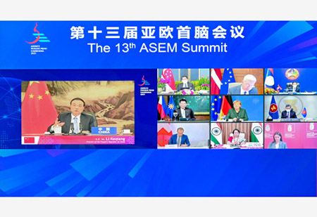 李克強強調,面對困難和挑戰,祗要亞歐國家繼續秉持相互尊重、平等相待、合作共贏的精神,攜手打造共同發展、共同繁榮的強勁引擎,就一定能够共創亞歐合作新局面、共迎亞歐各國新未來。