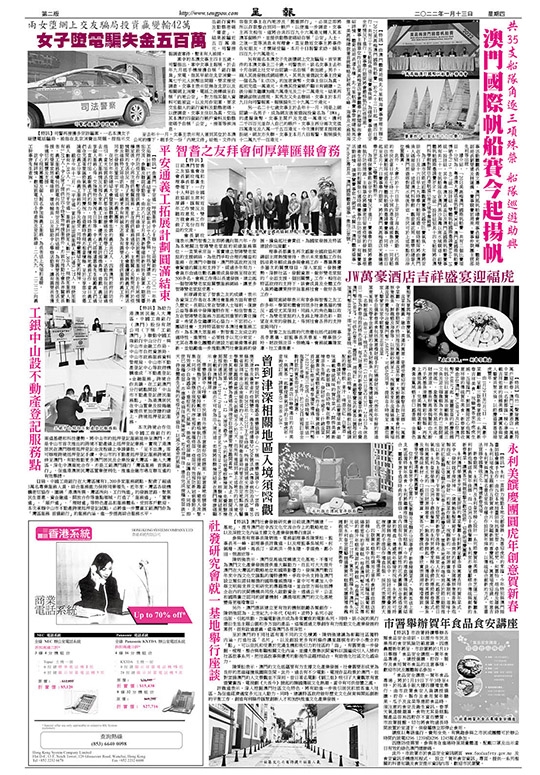 此外,大會亦於十六日早上安排了海上觀賽活動,已取票的市民在當日早上七時三十分到內港客運碼頭集合,一同登船前往欣賞船隊巡遊及雙體帆船國際邀請賽賽事。同時,由即日起至本月十六日賽事舉行期間,將於澳門美高梅酒店天幕廣場舉行Hobie 16雙體帆船展示。