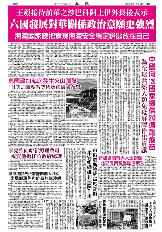 “我同來訪的六位外長及海合會秘書長分別進行深入交流,共同規劃雙邊關係發展路徑,協調雙方在國際和地區問題上的立場。”王毅說,來賓們欽佩中國特色社會主義取得的巨大成功,高度評價中國在國際和地區事務中發揮的積極作用;預祝北京冬奧會成功精彩,為疫情蔓延下的世界營造更多歡樂,增添更多信心。