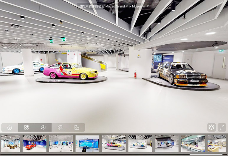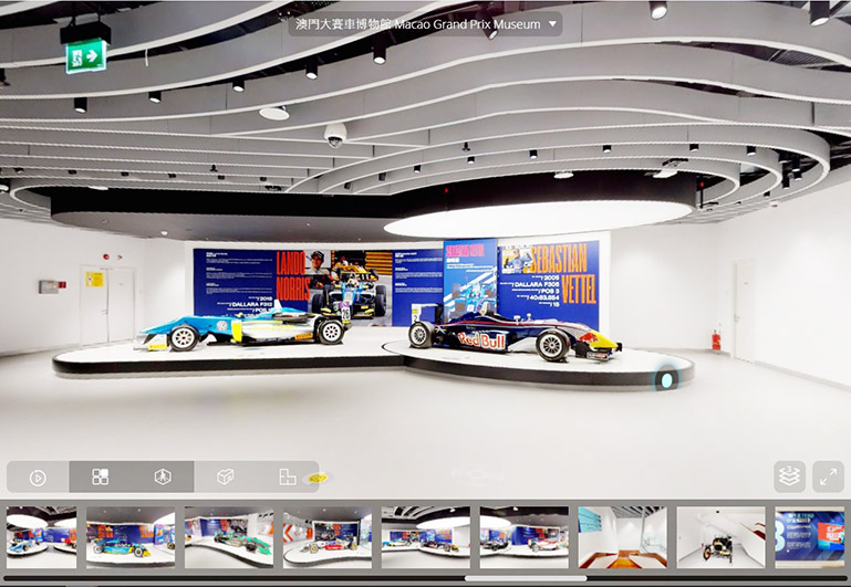 澳門大賽車博物館是次引入創新科技360全景虛擬導覽技術,使用專業相機拍攝博物館實景,並透過專業軟件製作3D立體感的全空間360環景,以逼真的效果把博物館的展區空間、場地佈置及展品呈現在觀眾眼前。居民和旅客只需到訪澳門大賽車博物館官方網站線上虛擬參觀專頁:mgpm.macaotourism.gov.mo/vrtours,就可透過線上虛擬導覽方式,不受時間和地點限制地從多角度參觀博物館。新增的360環景導覽將參觀博物館的體驗延伸至雲端,以提升居民和旅客對澳門大賽車博物館的興趣,吸引他們親身到場體驗。