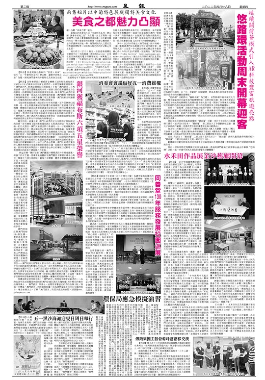 其中,2021年9月推出《澳門味道》影片特輯,一連12集邀請澳門知名廚師分別介紹烹調中菜、澳門特式菜、土生菜、中式甜品和葡式甜品等多款佳餚心得;今年3月至6月期間,旅遊局在“澳門美食網站——Video Gallery”(www.gastronomy.gov.mo/#video-gallery)推出合共四集的澳門土生菜系列影片,展現澳門土生菜的文化底蘊和烹飪技藝,持續促進美食文化的傳承和推廣。