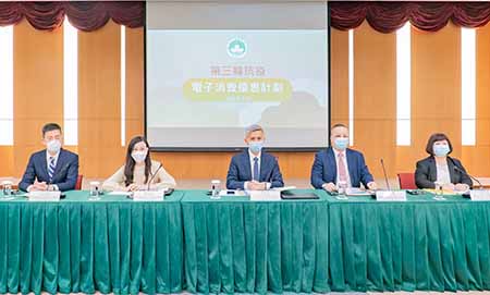 經濟及科技發展局、澳門金融管理局和社會工作局舉行新聞發佈會,公佈「第三輪抗疫電子消費優惠計劃」的登記、領取及使用詳情。5月10日起接受網上登記,登記期至明年1月13日;成功登記的居民最快可於5月23日起領取優惠,領取期至明年1月17日。使用期為6月1日至明年2月28日,較去年延長了兩個月。
