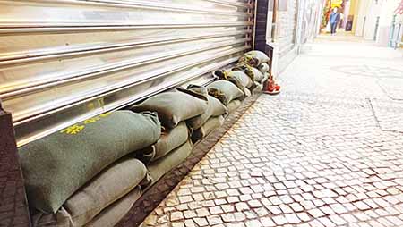 【特訊】氣象局預測,本澳近日天氣漸趨不穩定,預料今日會有大驟雨和雷暴,多個部門呼籲做好防範措施,內港一帶低窪地區商戶在關門休息前,都落下防水閘及放置沙包,預防發生水浸;而教青局宣佈非高等教育各教育階段全日停課,高等院校參照有關規定執行。