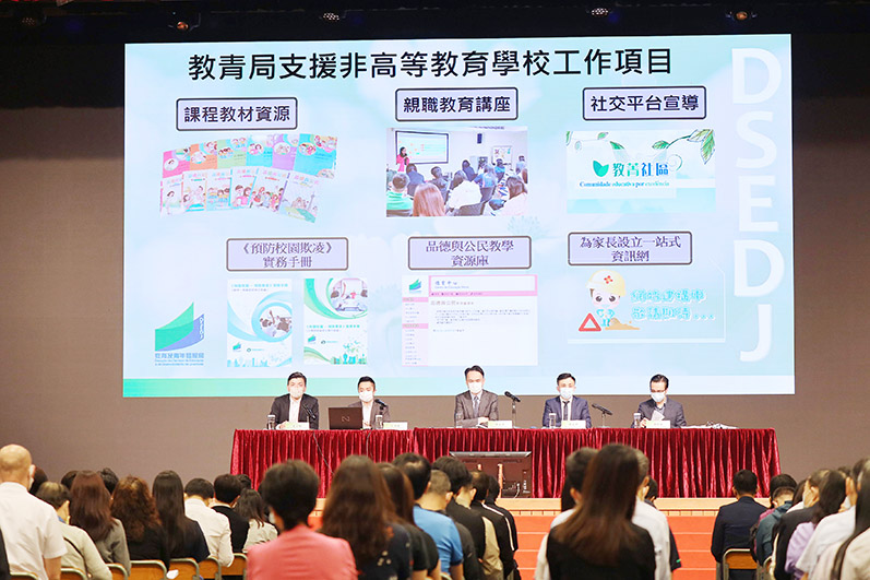 為進一步關心青少年學生身心健康,非高等教育廳廳長張子軒介紹了學生身心健康支援工作,與非高等教育學校探討在“校園危機管理專責小組”成員中,增設“校園身心健康工作小組”,從而幫助學校感應和辨識高危學生,希望能提早預防,及時發現,適切介入。教青局稍後亦會透過指引、教材和網頁資訊,進一步支援學校開展相關工作。