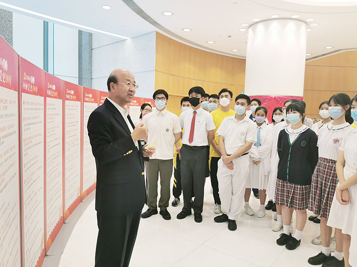 劉顯法歡迎升旗隊參訪公署,帶領大家參觀公署「百年黨史 百句名言」展板,以「立奮鬥志」「緊跟黨走」「心系人民」「勇擔使命」為題,用一個個生動的黨史故事,深入淺出解讀毛澤東、鄧小平、江澤民、胡錦濤、習近平等黨的領袖在不同歷史時期的名言。從「中國人民從此站立起來了」「走自己的道路,建設有中國特色的社會主義」到「構建以合作共贏為核心的新型國際關系,打造人類命運共同體」,動情講述中華民族迎來了從站起來、富起來到強起來的偉大飛躍。劉顯法勉勵特區青年牢記「幸福都是奮鬥出來的」,要志存高遠、胸懷天下,刻苦學習、銳意創新,「擼起袖子加油幹」,在特區和國家發展的廣闊舞臺上播撒青春的光和熱。